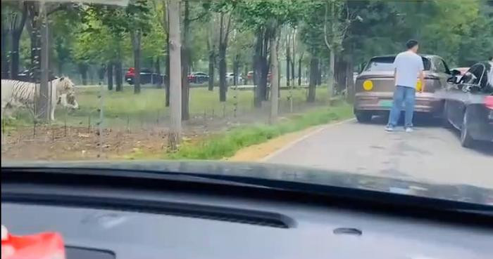 荒唐!游客猛兽区下车吵架险遭老虎追随,网友直呼“命比车值钱”